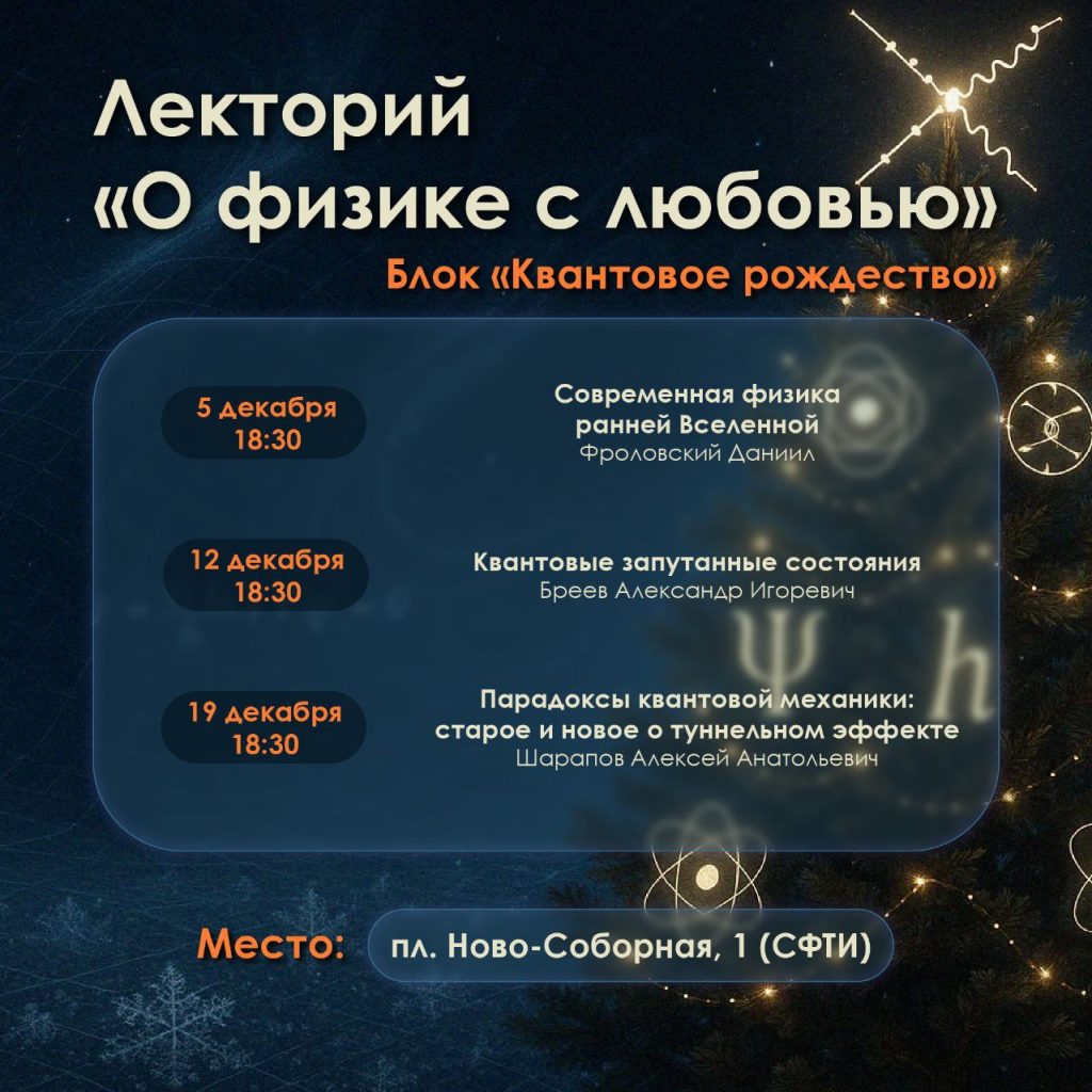 Лекторий «О физике с любовью» начинает предновогоднюю серию встреч. Давайте заглянем за передний край науки и в глубины Вселенной вместе с физиками ТГУ. Квантовая физика не только меняет технологии (от […]